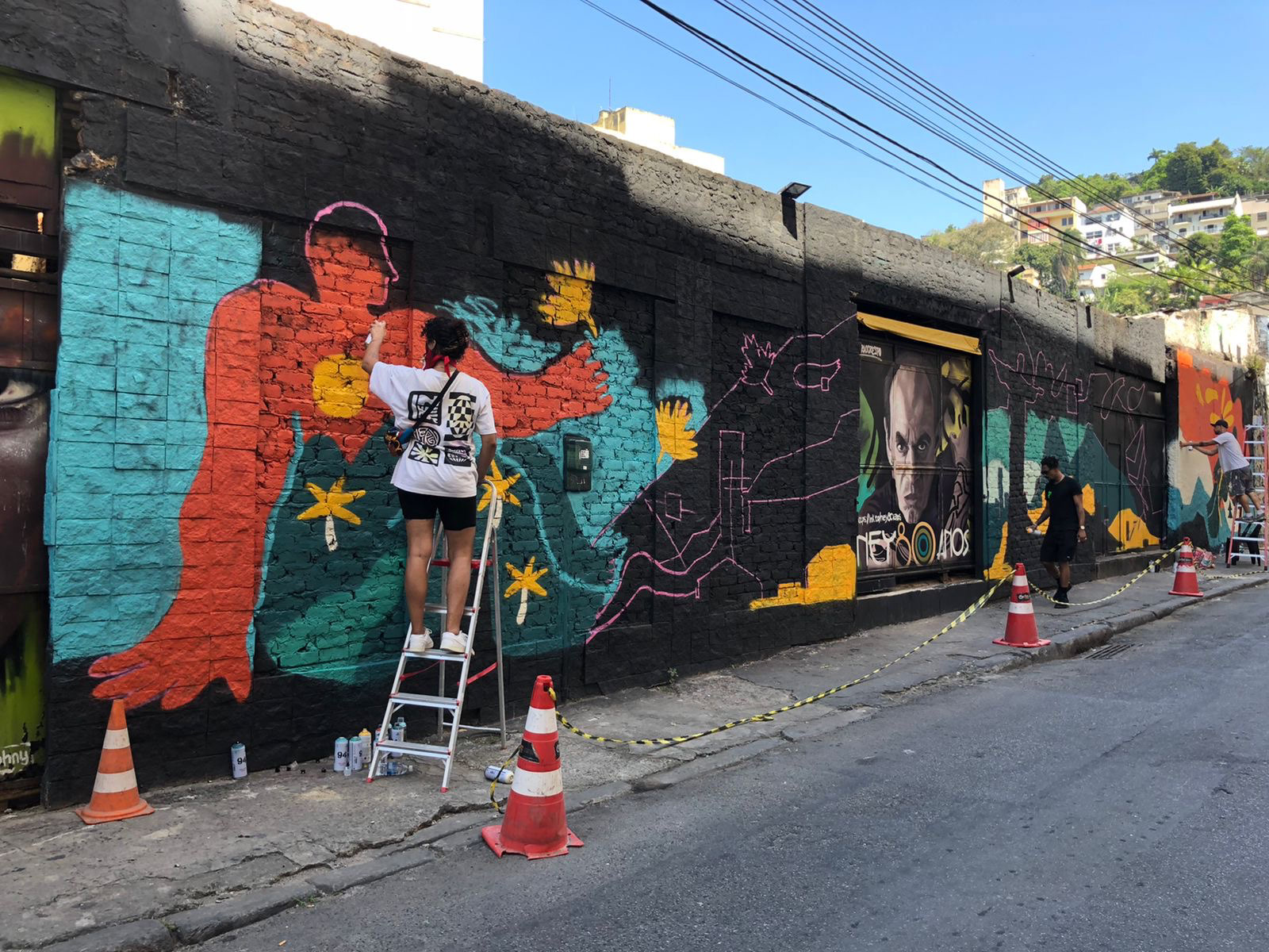 Réalisation d'une murale à Rio de Janeiro, en collaboration avec l’artiste brésilien